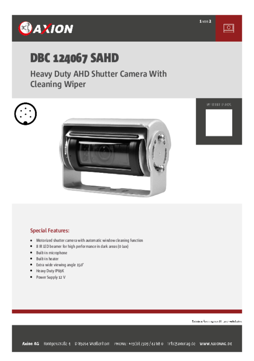 Motorised AHD colour camera with protective flap (shutter) and cleaning/wiping function.