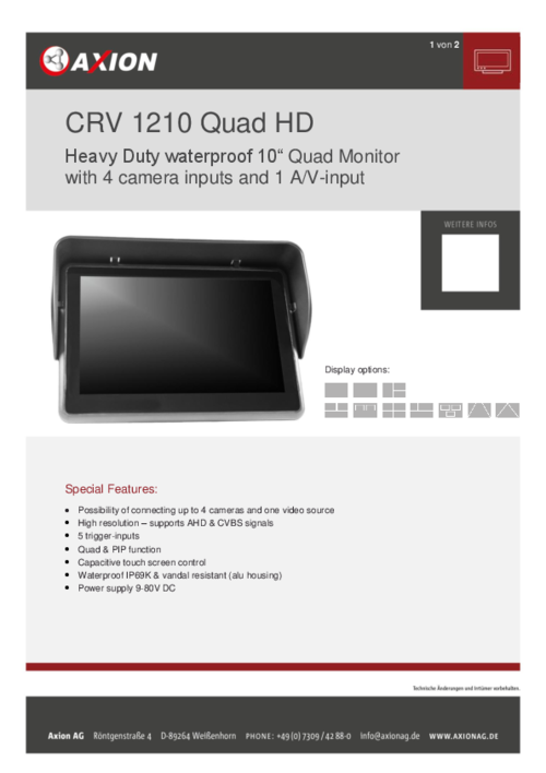 - 4x video-in for cameras (AXION Mini-DIN) / 1x video-in cinch