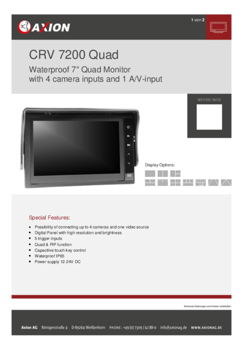 - 4x video-in for cameras (AXION Mini-DIN) / 1x video-in cinch