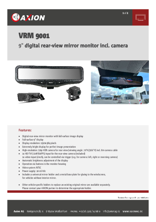 - VRM 9001 Mirror monitor