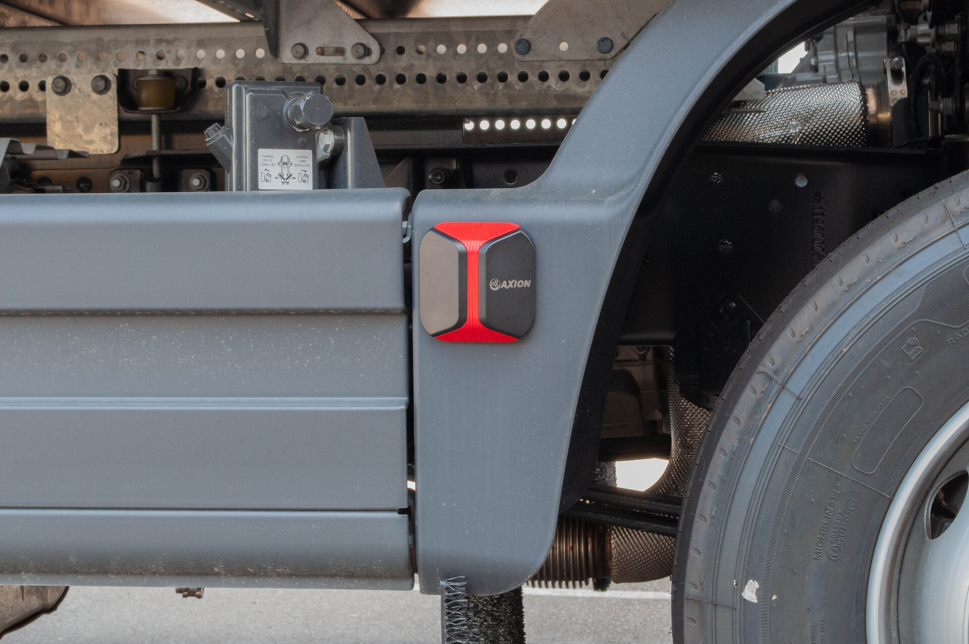 * Für eine bessere Übersichtlichkeit ist der Abbiegeassistent erweiterbar um ein Kamera-Monitor-System. Hierfür wird eine Kamera außen am Fahrzeug montiert, welche den Abdeckungsbereich anzeigt und ein Monitor im Bereich der A-Säule angebracht. Wenden Sie sich für Empfehlungen an AXION oder Ihren Fachhändler.