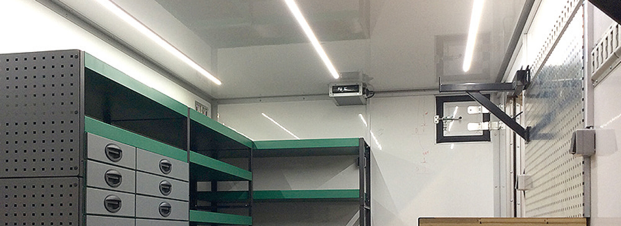 LED Beleuchtung – ein deutlich hellerer Laderaum. Die serienmäßige Innenbeleuchtung der meisten Laderäume bietet nicht genügend Licht für die Arbeit. Unsere Axion-Green:ID Laderaum- und Fahrzeuginnenbeleuchtungssysteme sorgen für Licht, mit dem man arbeiten kann. Ob bei LKWs, Servicefahrzeugen, Behördenfahrzeugen, etc., wir bringen Licht dorthin, wo es benötigt wird. Ob Schublade, Laderaum, Stufen, etc., wir haben Lösungen für alle Bereiche. Unsere Beleuchtungssysteme sind in verschiedenen Längen und größtenteils als 12 Volt oder 24 Volt Versionen verfügbar und besitzen einen eingebauten Spannungsregler, der Spannungsschwankungen kompensiert – so haben Sie immer eine gleichbleibende Helligkeit im Fahrzeug. Hohe CRI Werte (RA mindestens 80) sorgen für eine farbgetreue Darstellung.