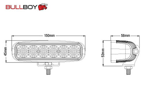 Verbrauch 18W Lumen 1.440 (theoretisch) Lumen 989 (gemessen) Lichtfarbe 6.000 Kelvin Spannung 9-32V Leistungsaufnahme 0,96 A @ 13,7 V Schutzklasse IP67 Betriebstemperatur -40° bis +85°C Lebensdauer 50.000 Stunden Abmessungen 150x53x56mm