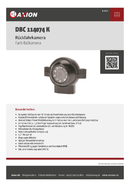 - Kompakte Ball-Type Kamera für Einsatz als Front-/Seiten und/oder Rückfahrkamera