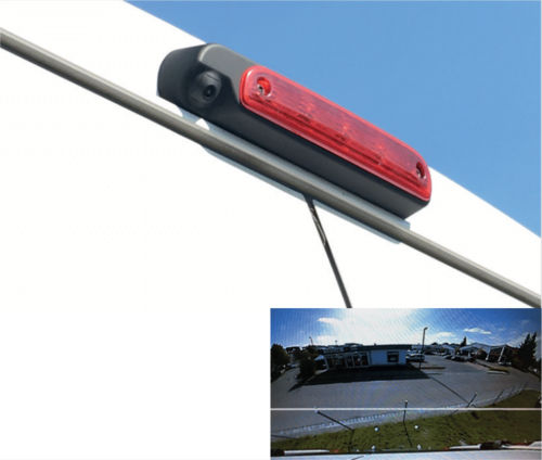 Rückfahrkamera integriert in speziell entwickelter Bremslichtkonsole zur Montage an Fiat Ducato, Peugeot Boxer und Citroen Jumper.