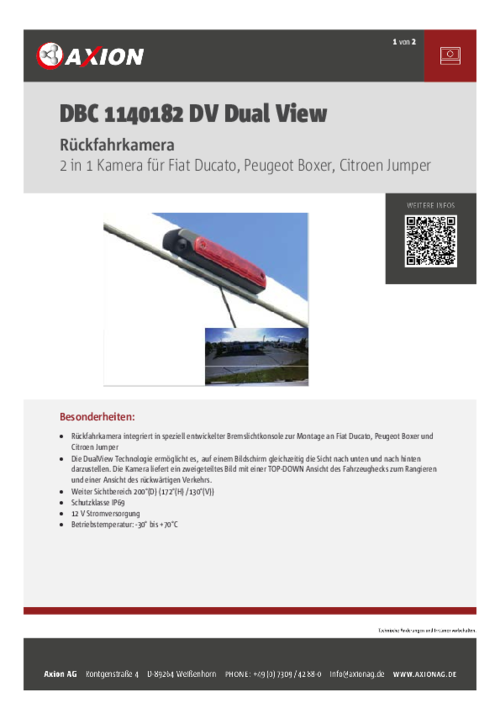 2 in 1 Rückfahrkamera für Fiat Ducato, Peugeot Boxer, Citroen Jumper