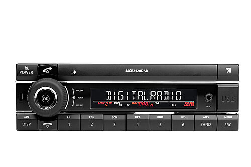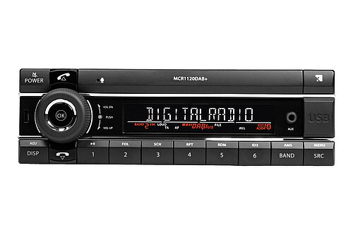 Das AXION Voll-DIN-Frontdesign erlaubt die optimale Bedienung. Große, leicht bedienbare Tasten – ideal im Nutzfahrzeug- und PKW-Bereich. Die logische und selbsterklärende Steuerung macht die Produkte äußerst anwenderfreundlich. Ein großes LCD-Display erleichtert die Bedienung und Sendersuche und stellt Informationen gut lesbar dar. Die integrierte Bluetooth Freisprecheinrichtung unterstützt sicheres Telefonieren während der Fahrt. DAB+ Digitalradio bringt auf Wunsch digitalen Radiogenuss in das Fahrzeug. Lassen Sie sich die verschiedenen Varianten zeigen.