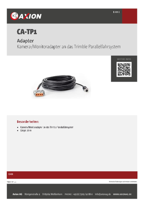 Kamera-/Monitoradapter an Trimble Parallelfahrsystem.