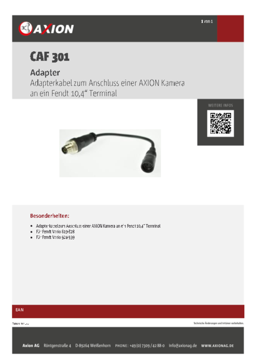 Adapter zum Anschluss einer AXION Kamera an ein Fendt 10,4“ Terminal