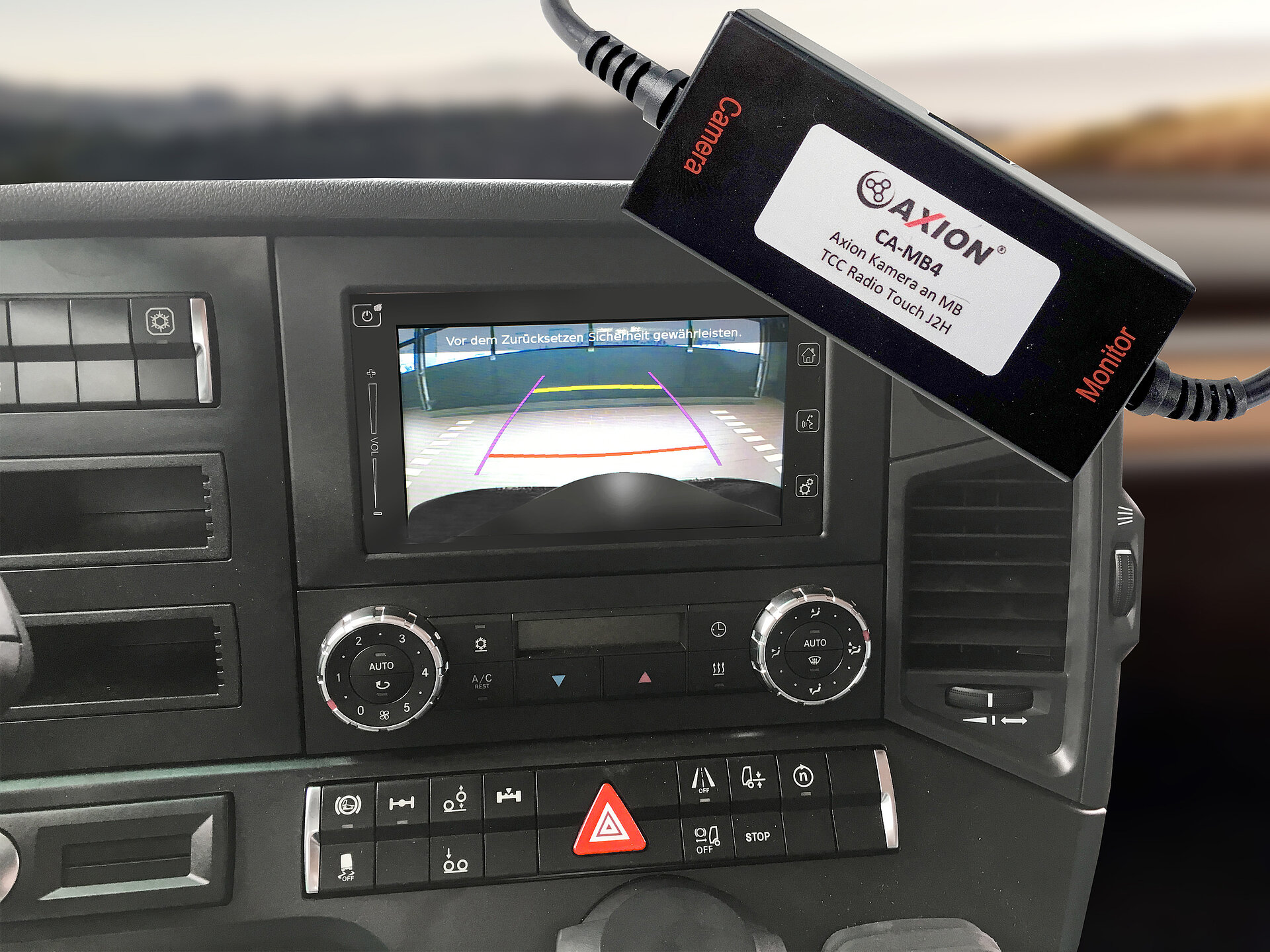 Adapter zur unkomplizierten und schnellen Nachrüstung einer AXION Rückfahrkamera oder Abbiege-Assistent in Fahrzeugen mit dem Mercedes TCC Touch Radio (J2H Multimedia Radio Touch).