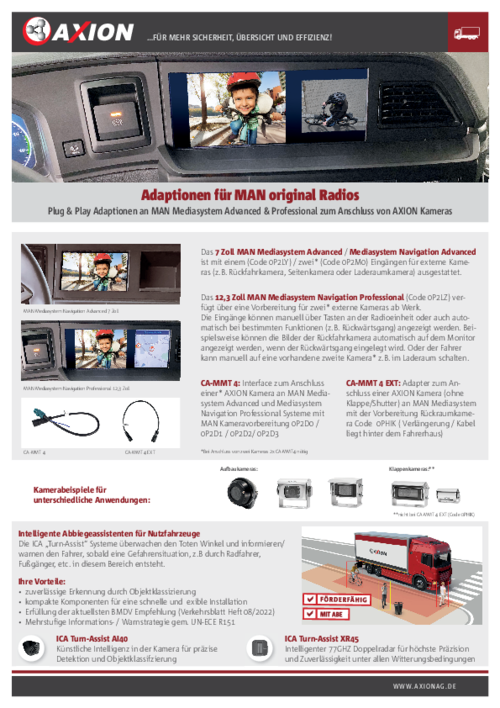 Interface zum Anschluss einer* AXION Kamera an MAN Mediasystem Advanced und Mediasystem Navigation Professional Systeme mit MAN Kameravorbereitung 0P2D0 / 0P2D1 / 0P2D2/ 0P2D3