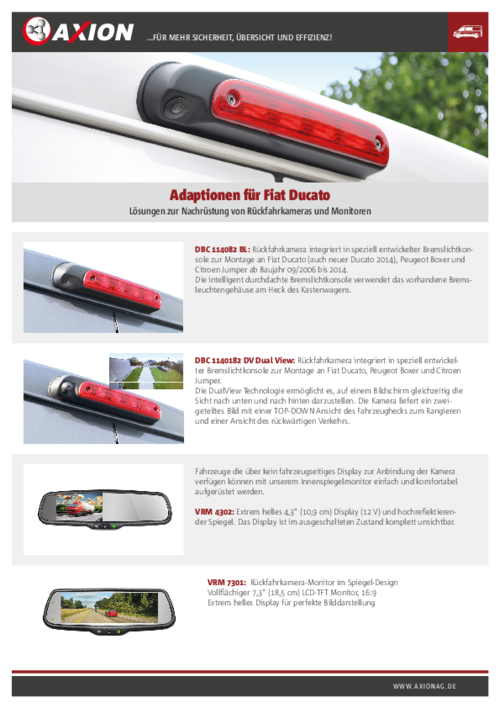 Adapter für eine AXION Kamera (MINAX) -> Ducato, Boxer, Jumper