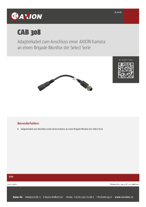 Adapterkabel AXION Kamera -> Brigade Monitor der Select Serie