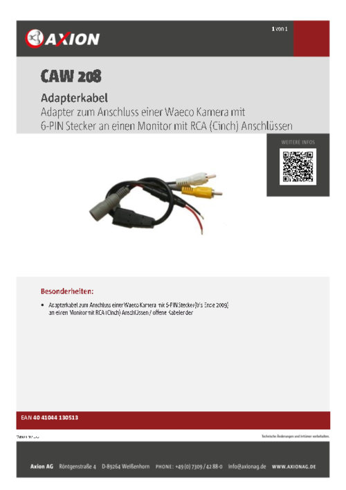 Adapter für eine Dometic (Waeco) Kamera(6-PIN) -> Monitor mit Cinch