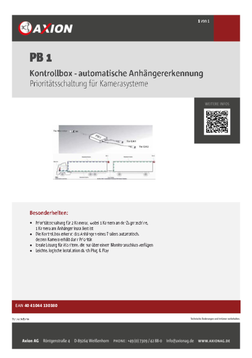 Die Kontrollbox erkennt das Anhängen eines Trailers automatisch und dessen Kamera erhält dann Priorität.(Plug & Play).