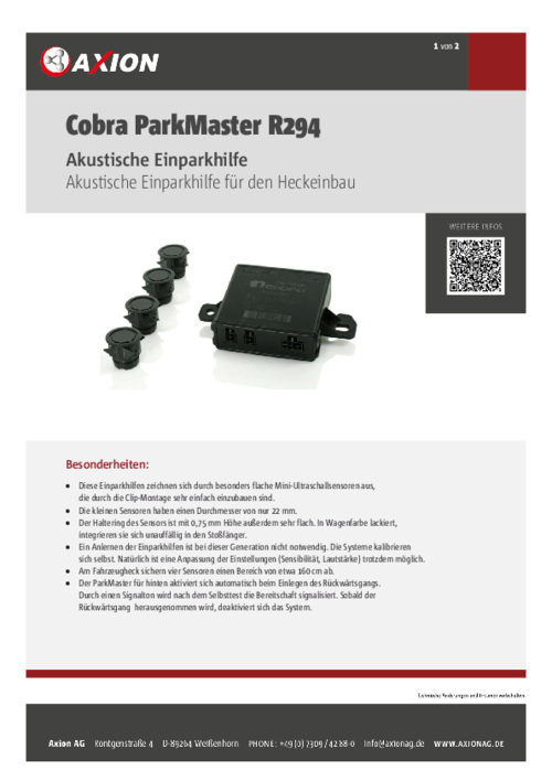 Diese Einparkhilfen zeichnen sich durch besonders flache Mini-Ultraschallsensoren aus, die durch die Clip-Montage sehr einfach einzubauen sind.