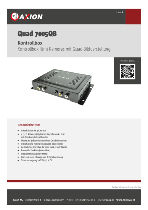 Kontrollbox für 4 Kameras mit Quad-Bilddarstellung