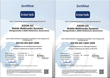 Die im Jahr 2000 gegründete Axion AG hat sich auf automotive Lösungen für Sicherheit und Infotainment spezialisiert. Sie bietet ein umfassendes Programm an professionellen Lösungen für Fahrzeuge aller Art, wie z.B. die Anbindung von Mobiltelefonen und Navigation sowie die Einbeziehung von Kamerasystemen, in Europa an. Wir entwickeln und designen Produkte in Deutschland und produzieren in Deutschland sowie in führenden Fabriken in Korea, Taiwan und China. Es können Produkte für nahezu jeden Einsatz entwickelt und produziert werden. Dadurch steht für Axion internationale Erfahrung und erstklassige Qualität zu marktgerechten Preisen.